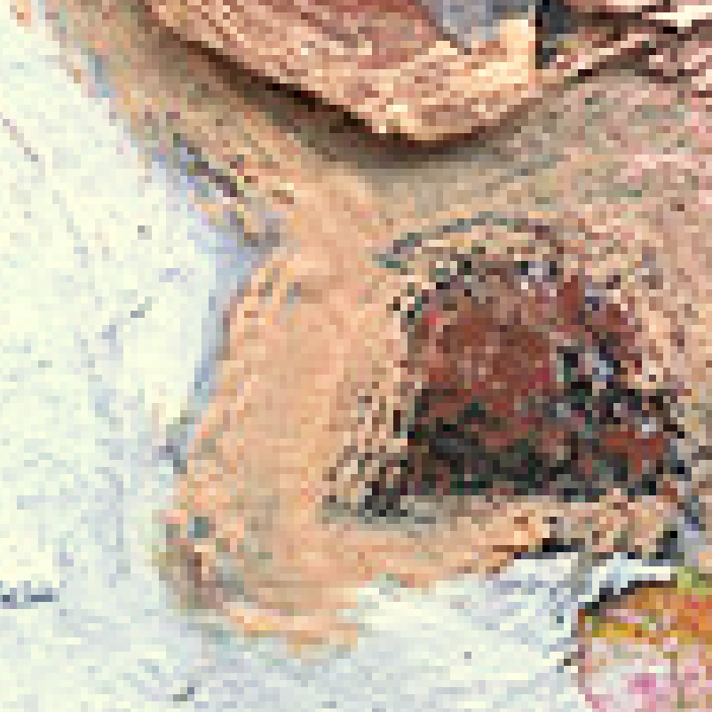 Das digitalisierte Bild sieht auf den ersten Blick OK aus, gehen wir jedoch näher ran, werden relativ schnell die einzelnen Pixel sichtbar, im Bild rechts dramaturgisch überspitzt dargestellt.
